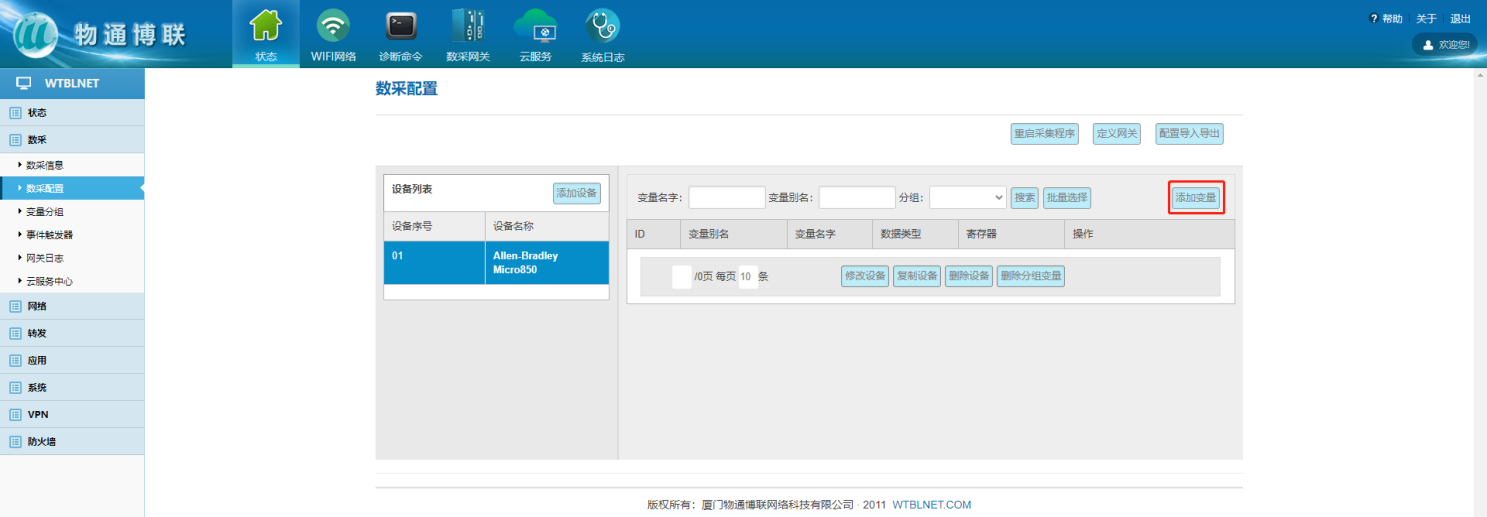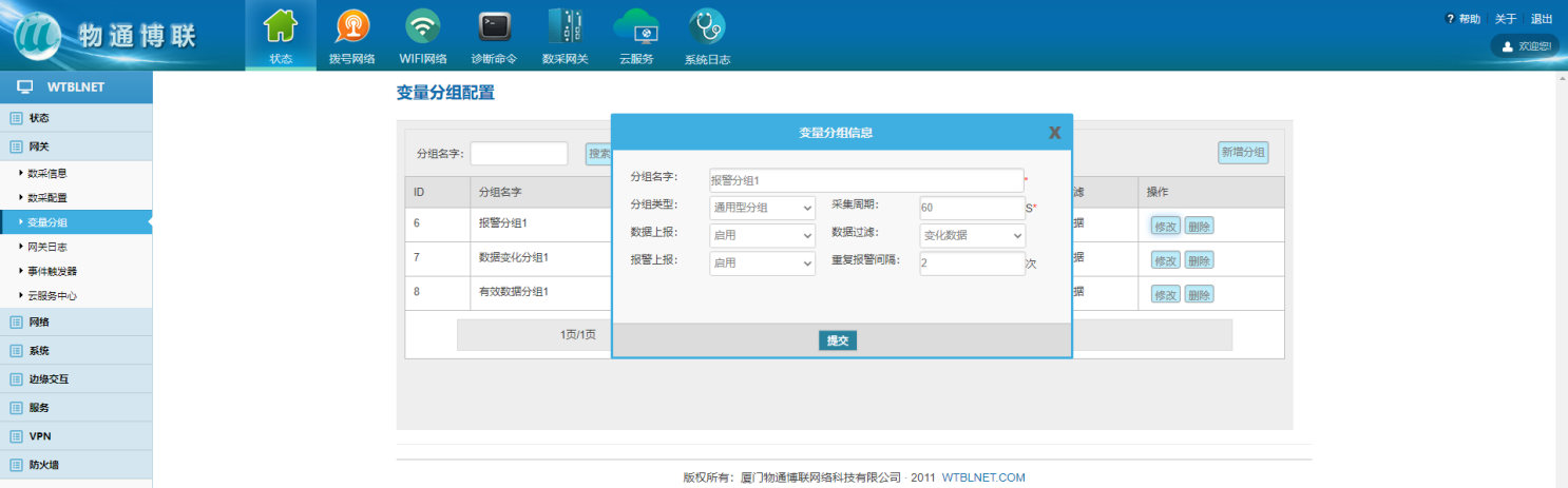 数据采集涉及多个采集时间、数据过滤、报警时,可顺利获得变量分组控制,变量需要选择到设定好的变量分组中。