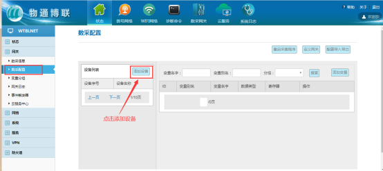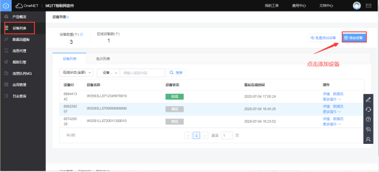 在目录栏中选择“设备列表”,然后点击添加设备