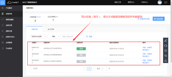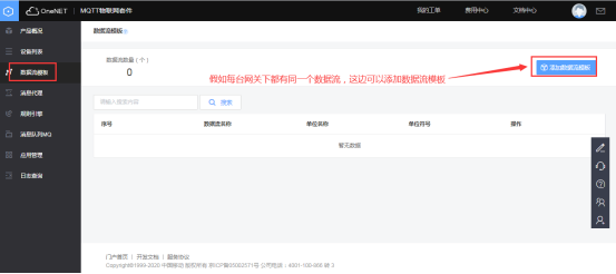 可以添加数据流模板,假如该产品底下的网关都有同名称的数据流