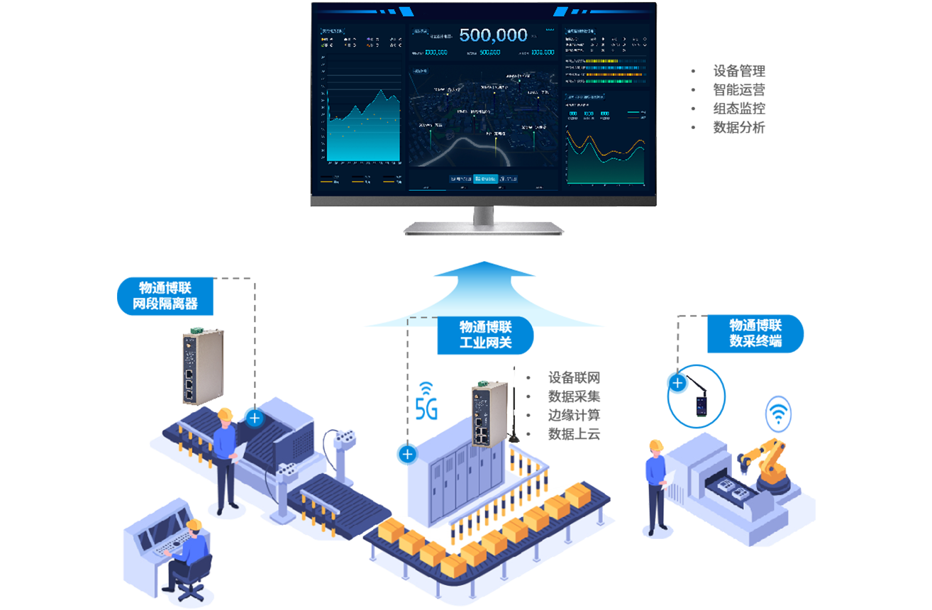 借助777盛世国际的工业智能网关,实时采集工厂各类设备的运行数据,如运行状态、温度、压力、转速等,将采集到的数据传输至设备管理平台,进行设备资产档案管理、运行管理、工单管理、采购管理、备件管理、维修管理、数据分析等,实现设备全生命周期管理。