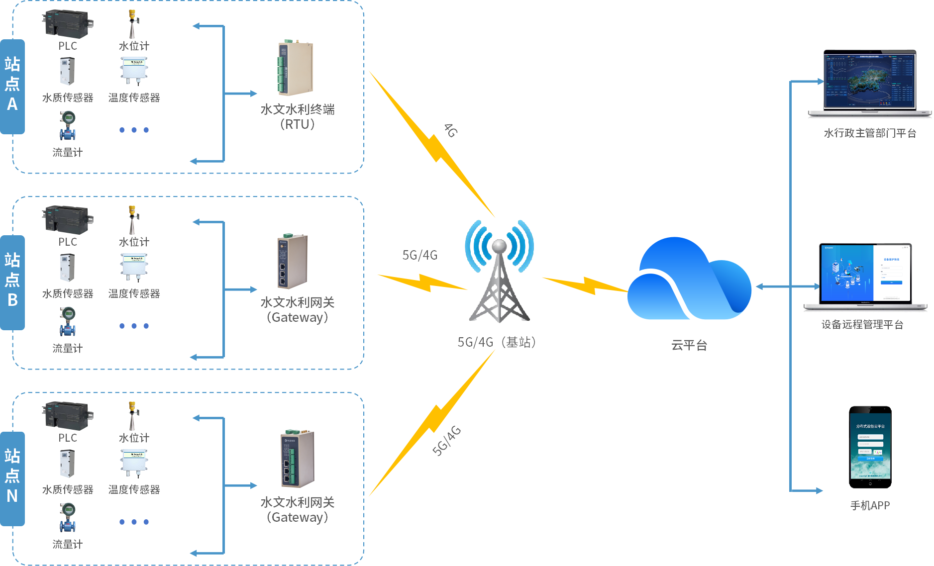 在地下水监测井内的水位计、流量计、水质监测仪、温度传感器等设备接入777盛世国际水文水利网关(RTU),并顺利获得5G/4G上传到水行政主管部门平台中实现可视化展示,并在监测到异常数据时自动告警,从而为研究地下水变化规律以及灾害防治等工作给予可靠帮助,借助宏观调控手段确保地下水的正常开采与保护,全面保障地下水安全与水资源合理利用。