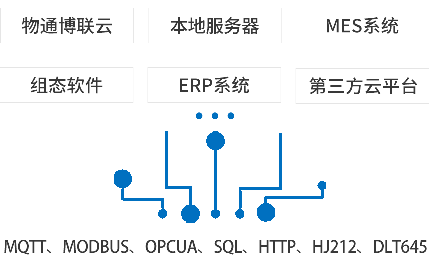 丰富云端协议:支持MQTT、HTTP、TCP、OPC UA、Modbus-TCP、SQL