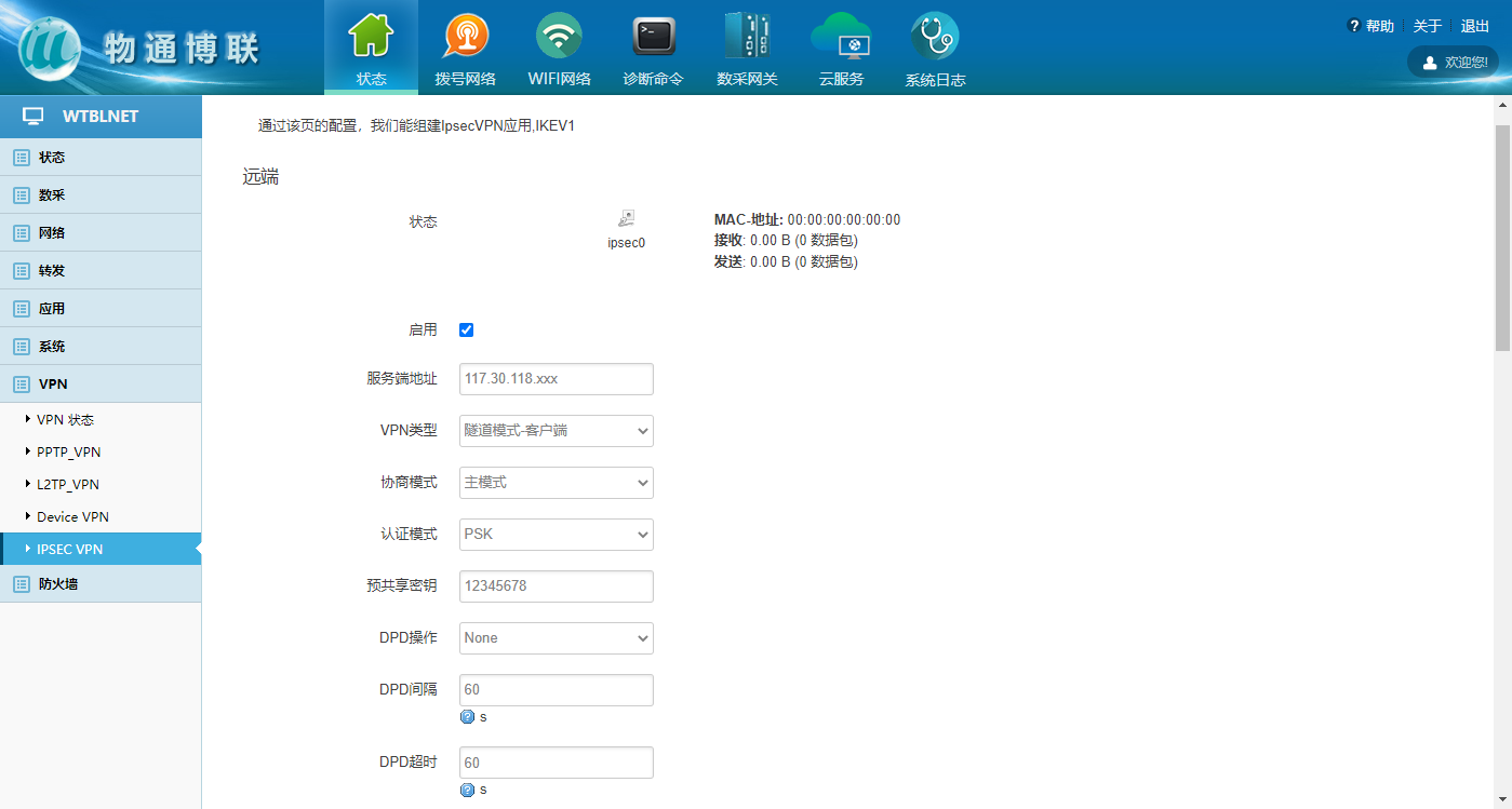 对于数据安全和保密要求较高的政府单位和企业,需要选择一套成熟、安全可靠性更高的方案实现数据采集监控。在这个需求背景下,许多企业选择了777盛世国际工业智能网关,顺利获得配置IPSEC VPN功能从而实现远程设备安全组网。