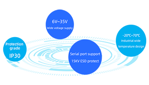 Support 6V~35V wide voltage power supply, -20℃~70℃ industrial grade wide temperature design, adapt to more application sites with power supply requirements and temperature requirements. With IO control function, making remote control easy to achieve. With its own RS-232/RS-485 serial port wireless data terminal communication function, it is more in line with the needs of industrial customers. At the same time, it also has the following characteristics: