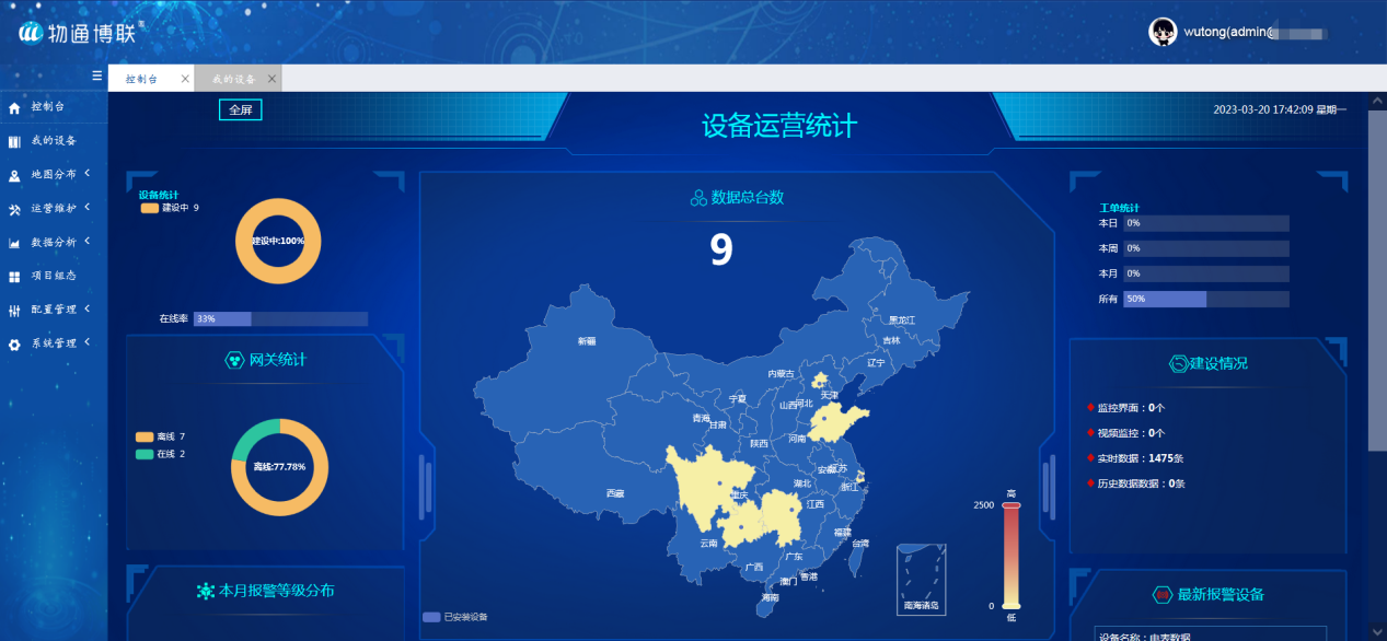 1、设备远程运营管理:支持海量设备的标准化接入,实时获取设备基本信息、在线情况、地理位置等信息,实现对设备的远程配置及管理。