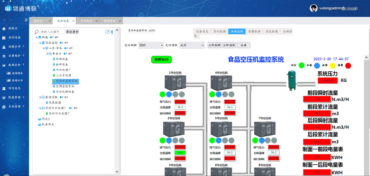 2、数据实时监控分析:可以查看历史曲线何数据图表,整合多维数据,大屏监控一目了然,实现动态的远程的监控,提升管理决策的科学度。