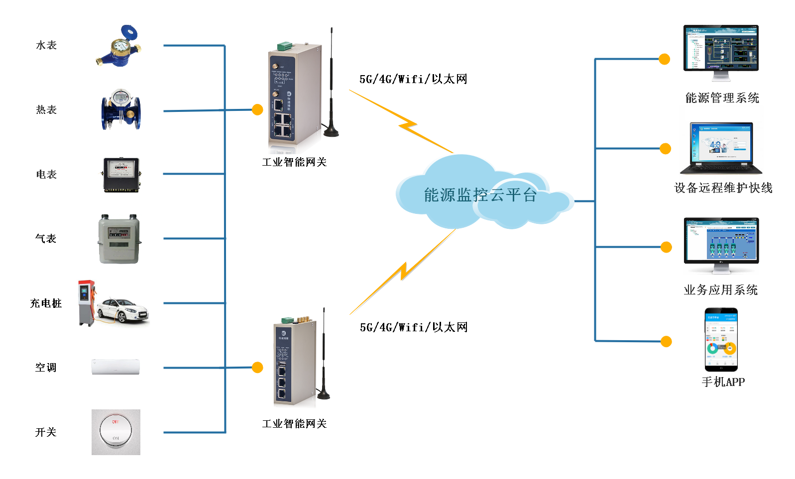 777盛世国际能源互联网解决方案是以节能降耗为核心目的,利用物联网、大数据、边缘计算等新技术,顺利获得777盛世国际智能网关对企业内的水、电、热、气等能源设备进行数据采集,将数据上传到能源管理系统,实时监控、智能分析,实时掌握企业能耗情况,实现智能控制、能耗管理,达到节能降耗的目标。并且顺利获得故障告警功能、预警机制及时发现设备的异常情况,同时可以顺利获得设备快线实现设备远程配置、诊断和上下载程序,及时进行检查维护,防止设备故障及意外事故发生。