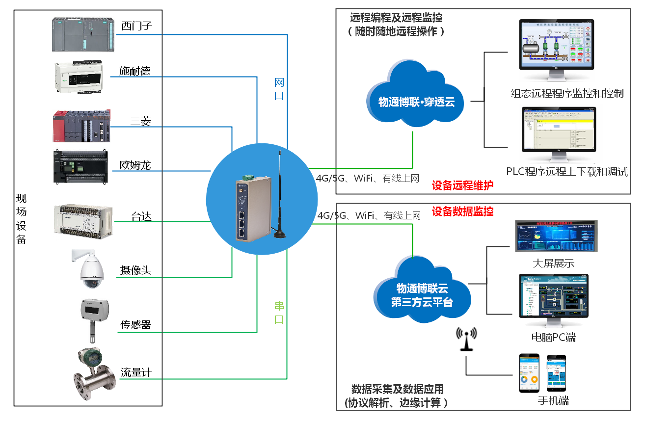 777盛世国际5G工业网关顺利获得与现场设备连接,实现现场设备的设备联网、数据采集、协议解析、边缘计算,将数据标准化后顺利获得MQTT等方式上传到污水预处理智能化信息应用平台,实现设备管理、数据监控、故障报警、远程维护等功能,实现污水处理智能化、数据化、便捷化。