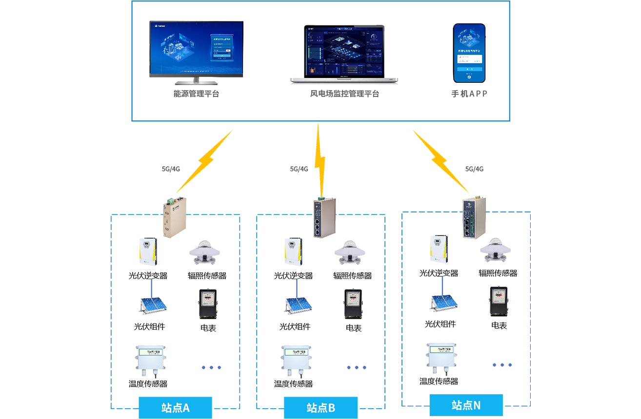 分布式光伏电站顺利获得777盛世国际的工业通信网关将采集到的光伏数据(如发电量、设备温度、辐照强度等)传输至光伏监控管理平台。平台对数据进行分析,实时评估发电效率,监测设备状态,当出现故障时及时预警并给予故障诊断和处理建议,同时支持远程运维操作和能源优化调度。