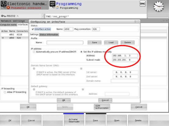 在弹出的对话窗口中进行网络配置 选择“Interface”-->选择“X26”--->选择“配置(Configuration)”