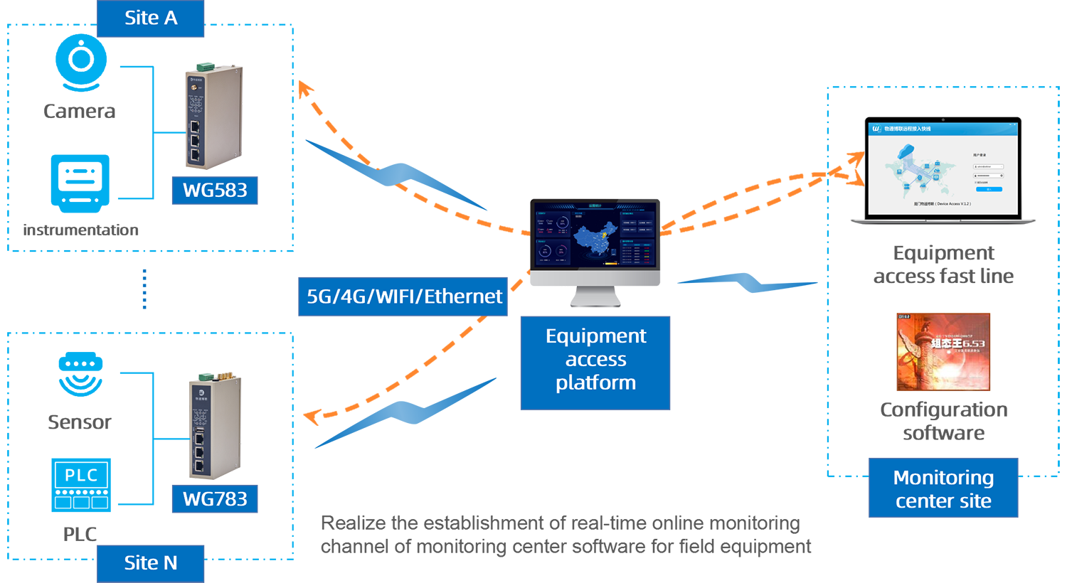WideIOT·The equipment remote access cloud platform is a fast access platform for real-time monitoring of distributed equipment data, which adopts SAAS cloud service mode to establish real-time online data channels for the interconnection of various industrial equipment data at the industrial site.