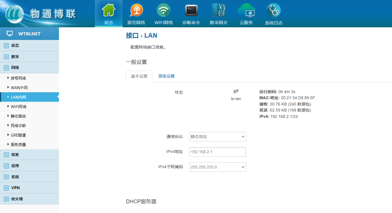 (4)浏览器输入更改后的IP地址登陆到网关配置界面即修改成功