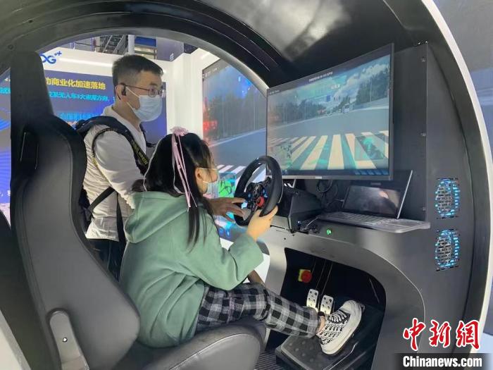 家长带孩子体验“智能车路协同系统”。 孙权 摄 中新网无锡... -