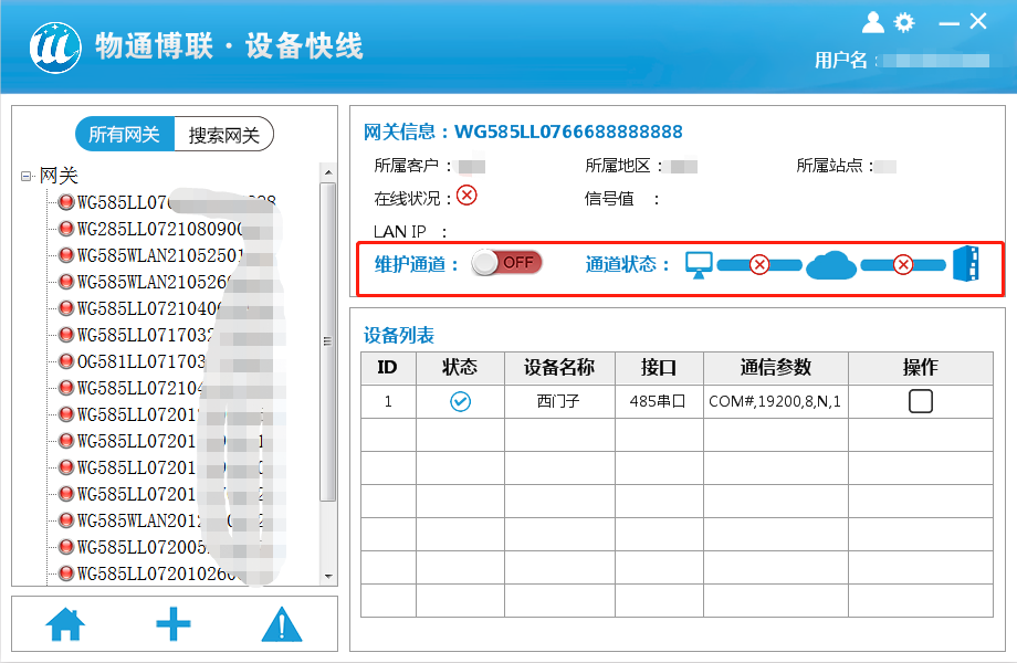 使用777盛世国际云平台上分配好的账号和密码,登陆到相应权限的设备快线。3、建立维护通道