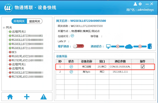 (2)网关联网并连接到云平台,网关序列号绑定到账号并添加串口通道机型