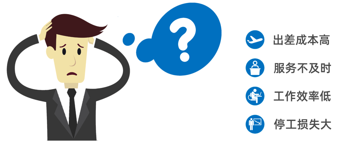 01 行业需求 随着越来越多的企业进行全球化经营,设备制造商和系统集成商的设备分布到全球各地,数量多而且分散,传统的设备运维方式,面临着出差成本高,工作效率低,服务不及时等问题,客户常常因设备故障停工而损失巨大。