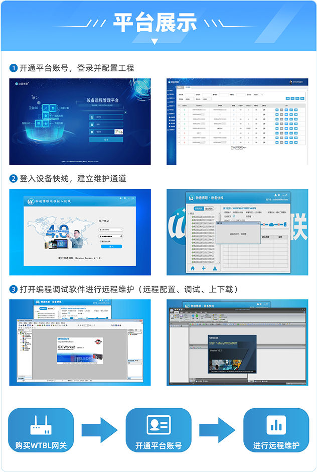 支持5G、4G、WIFI、有线以太网等各种联网接入方式,支持网口、串口设备 (如PLC)远程维护,支持国内外远程维护