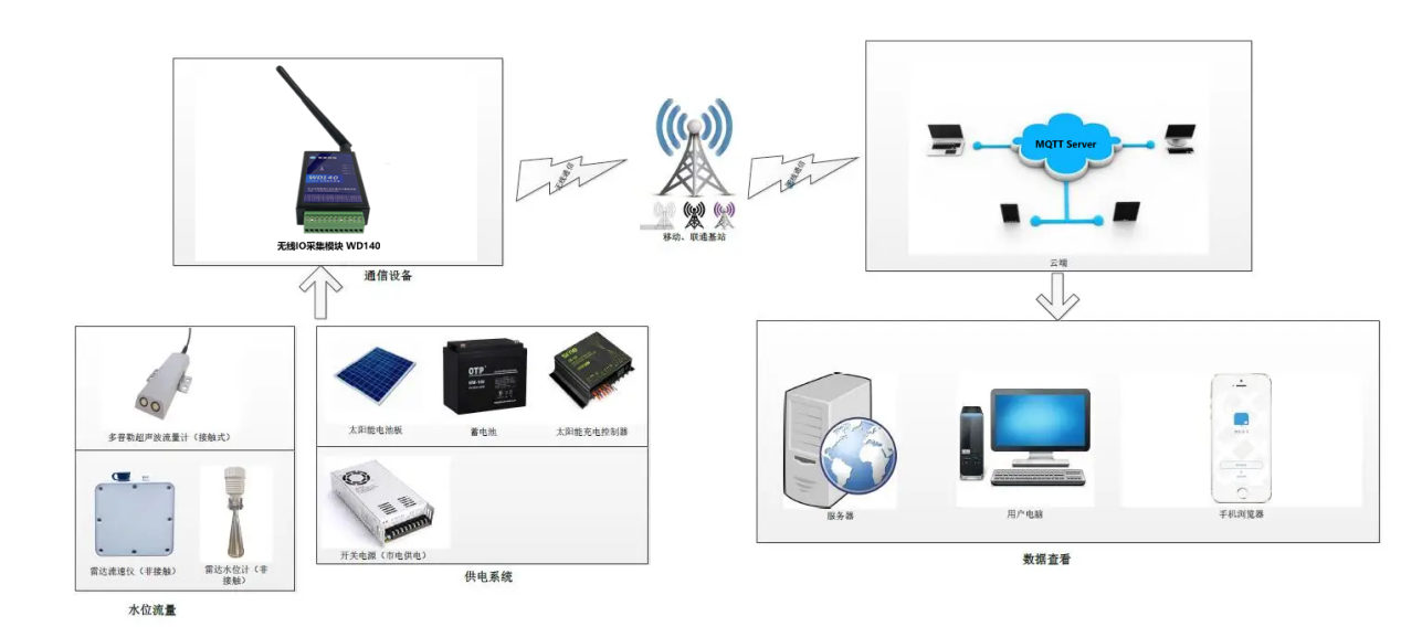 方案优势 01 低成本低功耗 相比传统的水位监测设备,采用WD140进行水位监测的成本较低,可以接入太阳能或蓄电池供电,可以大大降低项目成本,提高设备的经济性和可扩展性。