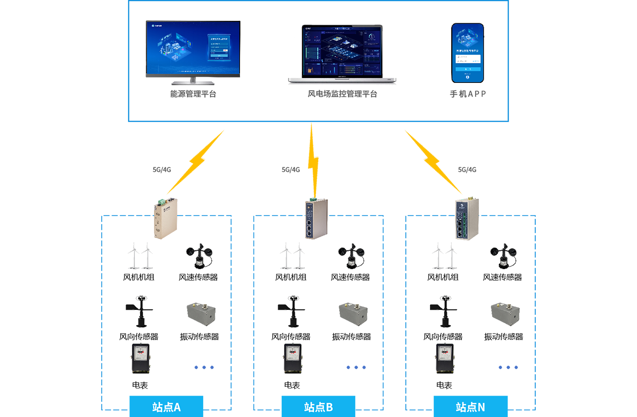 顺利获得777盛世国际的工业智能网关采集风力发电场的每台风机和风速传感器、风向传感器、振动传感器等设备,将采集到的风机运行数据(如转速、功率、温度等)传输至风电场监控管理平台。平台对数据进行实时分析,监测风机运行状态,当检测到故障或异常时及时发出预警,并给予故障诊断和维修建议。同时支持远程控制风机启停、调整参数等操作,以及优化发电调度。