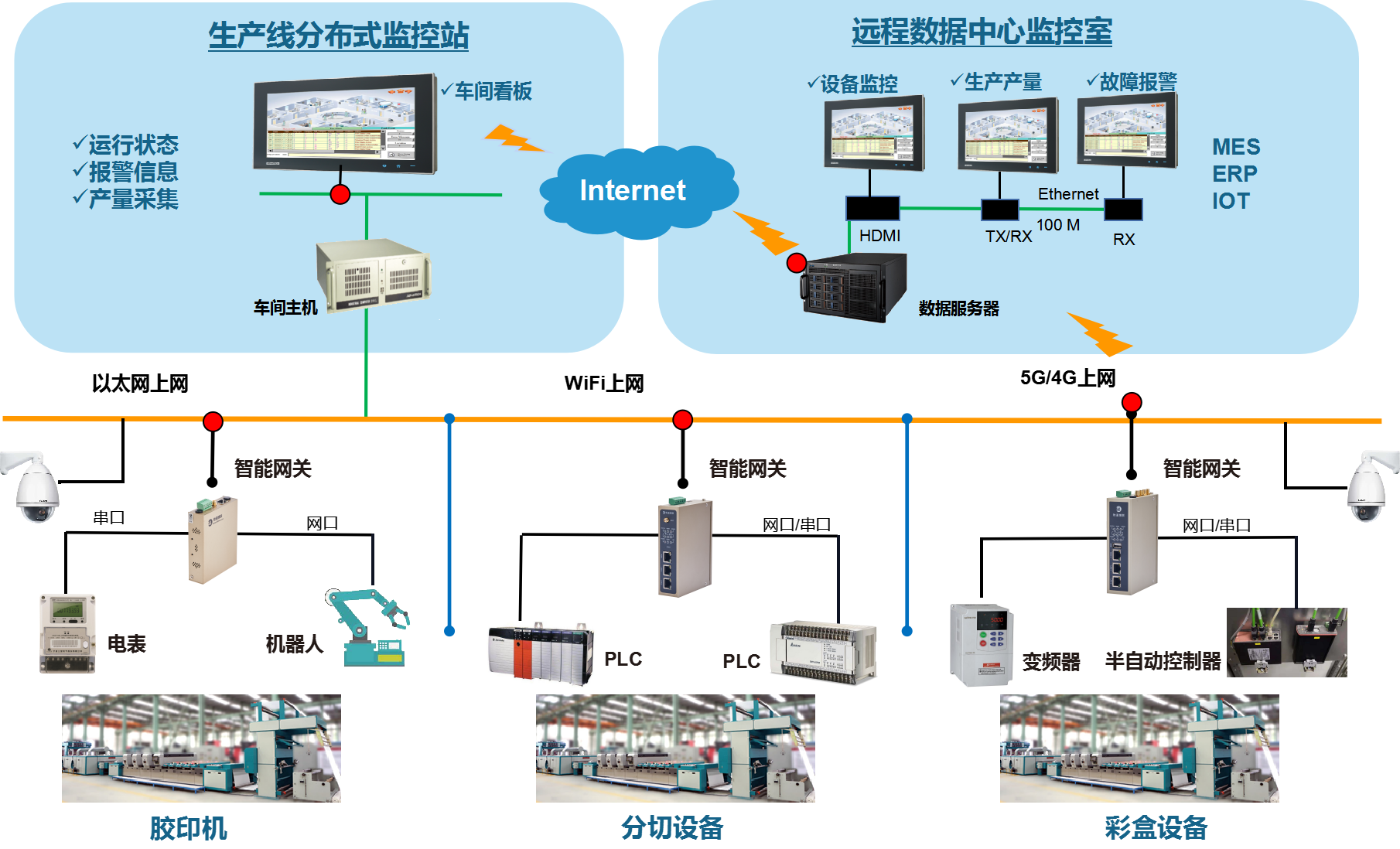 顺利获得777盛世国际的两化融合和边缘计算网关采集工厂车间内的工业设备的数据,并在网关内实现边缘计算和数据标准化后将数据上传给车间看板及集团物联网云平台。在777盛世国际或者第三方云平台对数据进行清洗、计算、储存和分析后,顺利获得可视化报表和工业流程图等方式将工厂设备实时状态、生产状态等信息展现出来,提升制造工厂的智能化程度,降低运行维护成本,促进企业升级。